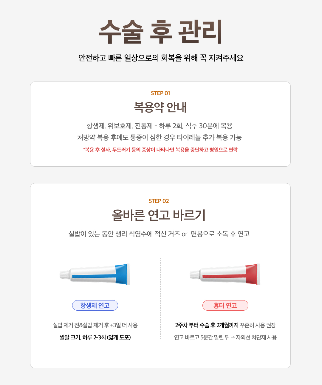 수술 후 관리 일정 및 안내
