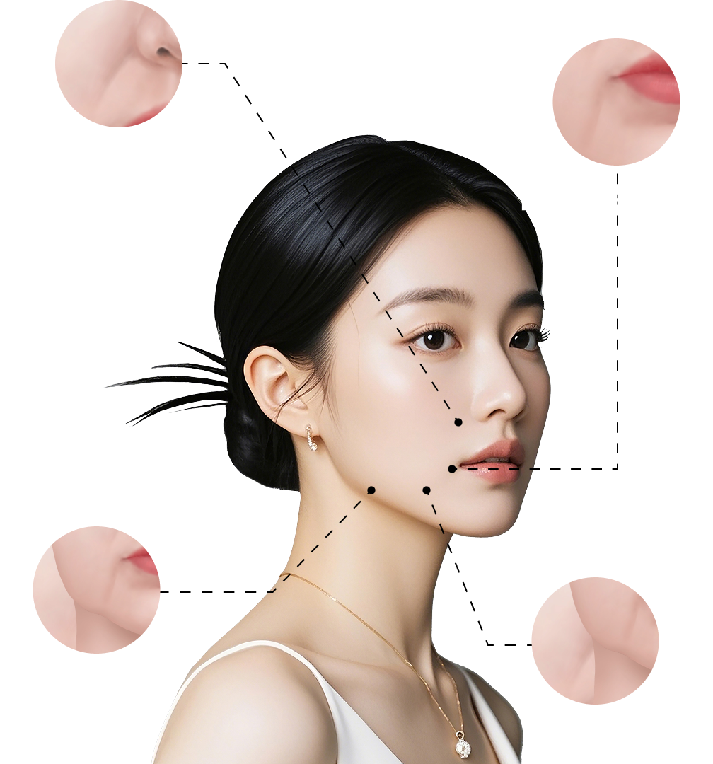 다양한 부위별 맞춤 시술로 탄력 있는 동안 얼굴을 만듭니다.