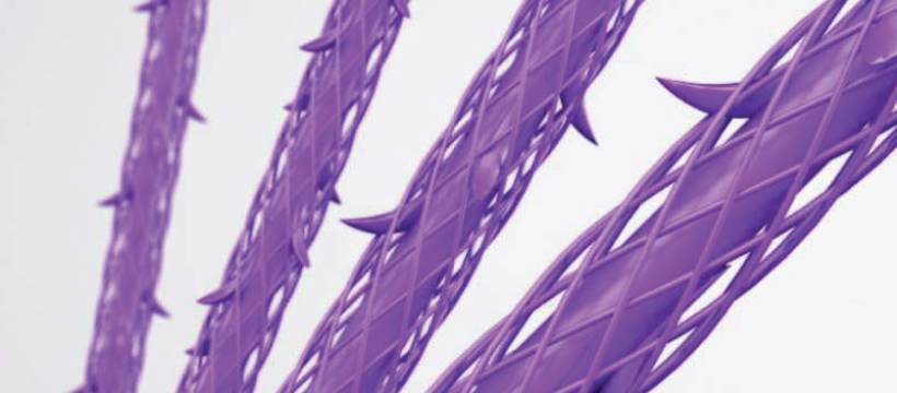 테스리프팅 (TESS LIFT) MESH 구조와 COG의 시너지, 360도 돌기를 가진 코그 실을 원통형 메쉬가 감싸는 구조로, 강력한 고정력과 우수한 인장력을 자랑합니다.