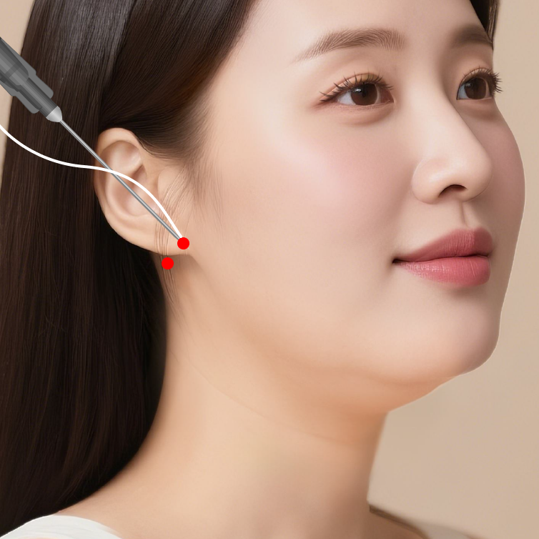 탄력 있고 매끈한 라인을 만들어주는 방법입니다. 귀 뒤쪽에서 실을 삽입해 반대편까지