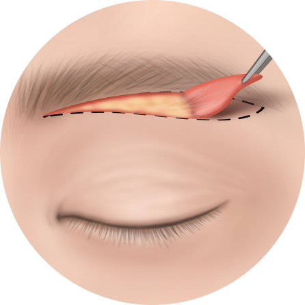 눈꺼풀 절개를 통해 처짐 개선 | 절개부위 | 눈썹 밑 절개를 통해 처짐 개선 |