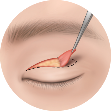 눈꺼풀 절개를 통해 처진 눈꺼풀 피부, 안와지방, 피하조직 제거와 동시에 필요 시 쌍꺼풀 라인을 만들 수 있습니다.
