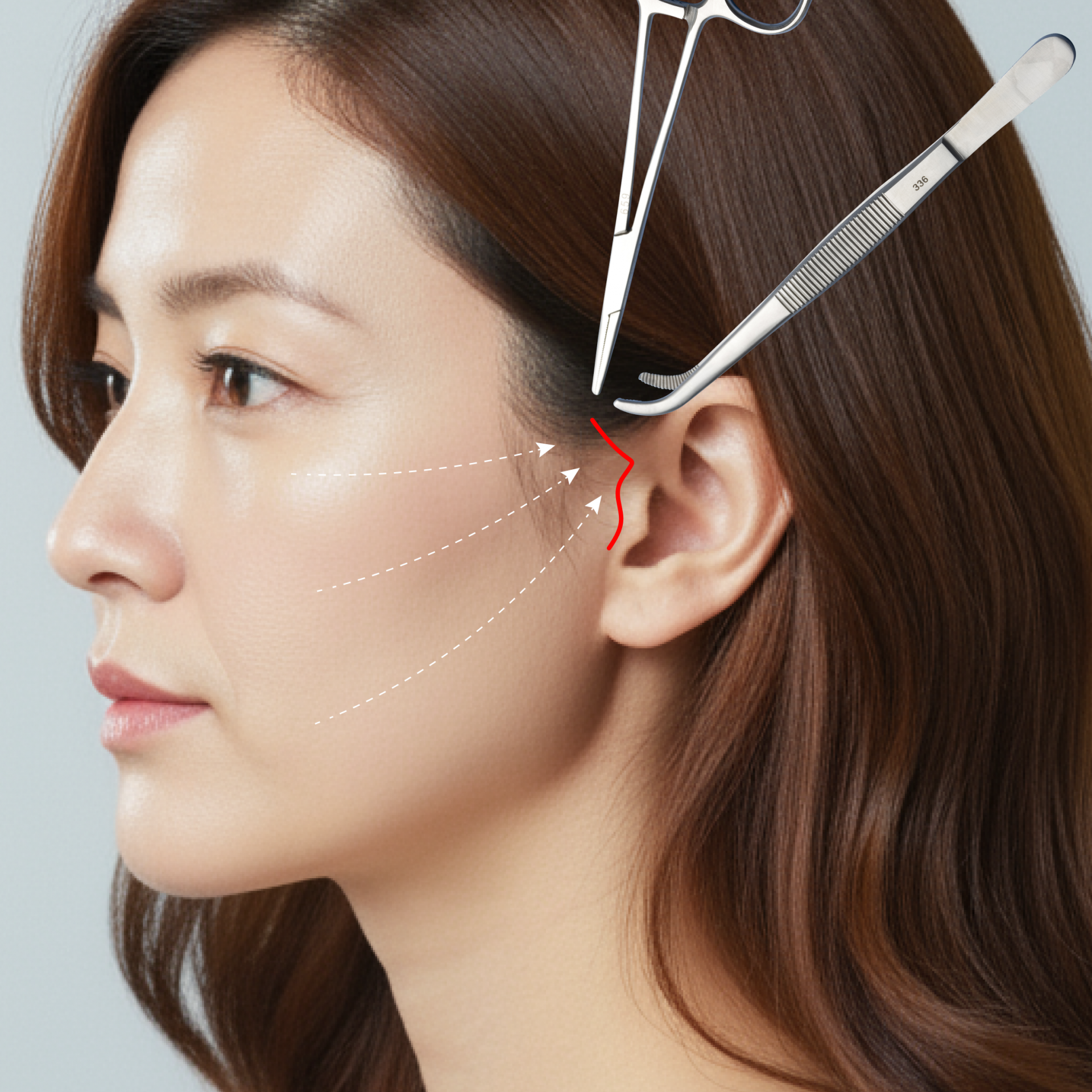 측두부나 귀 앞 절개를 통해 흉터 노출을 최소화하며, 비교적 빠른 회복이 가능합니다.
