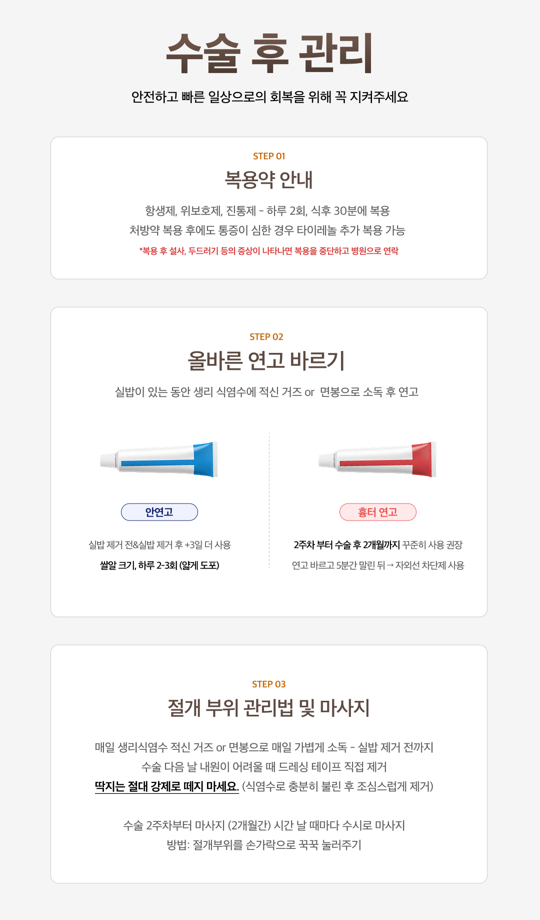 수술 후 관리 일정 및 안내